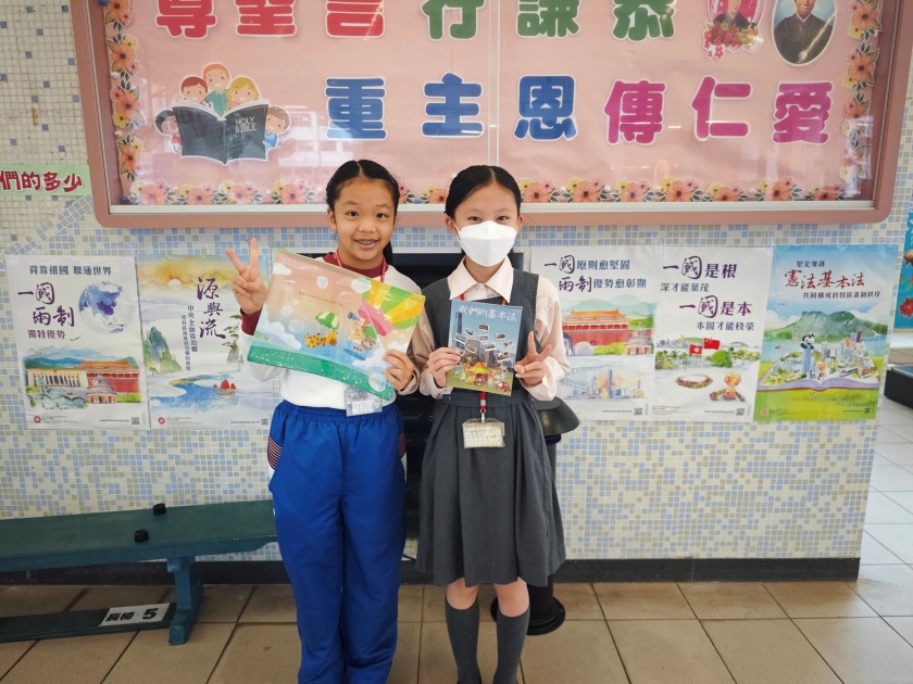 其後,學校於全天小息及午息時段,在操場設置了憲法知識攤位遊戲。同學們透過抽取寫有憲法或基本法描述的卡牌,判斷內容正誤。透過遊戲可以鞏固學生的法治觀念,培養他們成為具國家觀念、尊重法治、負責任的公民。這次活動反應非常熱烈,令人欣喜的是,不少同學能迅速且準確地答對所有題目,這不僅顯示他們對相關內容已有穩固的認知基礎,更反映了平日國民教育課程的學習成果。是次活動成效顯著,成功以寓教於樂的形式,將宏觀的憲制知識轉化為生動的互動體驗。活動不僅提升了同學對國家根本大法的關注度與熟悉度,更在他們心中強化了 「尊法守法」的意識及對國民身份的認同感。許多同學在活動後表示,對憲法與基本法的關係有了更清晰的認識,明白到維護國家安全與自身息息相關。