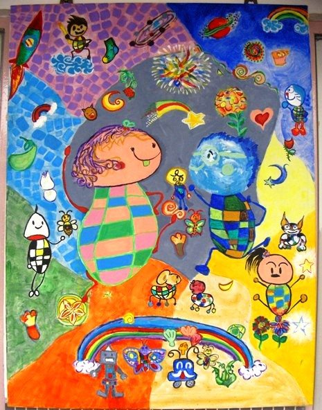 為了豐富學生對畫家和畫派的認識,視藝科老師在課程中通過資料搜集和欣賞,讓學生認識各派畫家的風格,並且仿傚畫家的畫風進行創作。一年級學習的對象是米羅,二年級學習的對象是梵谷,三年級是超現實派的馬格列特,四年級是畢卡索,五年級是印象派的莫內,六年級是杜象,畫家們的色彩和表現手法,刺激了小朋友的創作力,成果令人鼓舞。老師挑選了近60名同學的作品於各樓層走廊展出,讓師生一同分享他們創作的樂趣。此外,老師更利用樓梯的空間展示了學生和一些畫家的作品,這些美麗和充滿創意的畫作,為校園增添了繽紛和悅目的色彩。