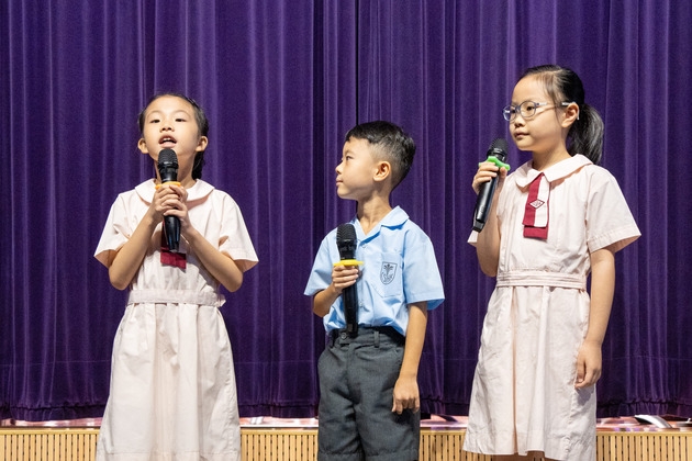 在7月12日的「2025才藝匯演」中,學生在舞台上展現他們的各種才能。當日的表演隊伍眾多,有來自本校的英語集誦隊、粵語集誦隊及普通話集誦隊;亦有來自一、二年級「成語故事演講比賽」的冠軍學生。更多的表演隊伍是來自校內不同的多元活動組別。同學們於台上充滿自信,充分表現出他們的多才多藝,全力展現他們的學習成果。在同學努力練習下,是次演出十分精彩。