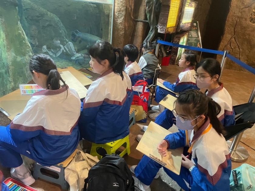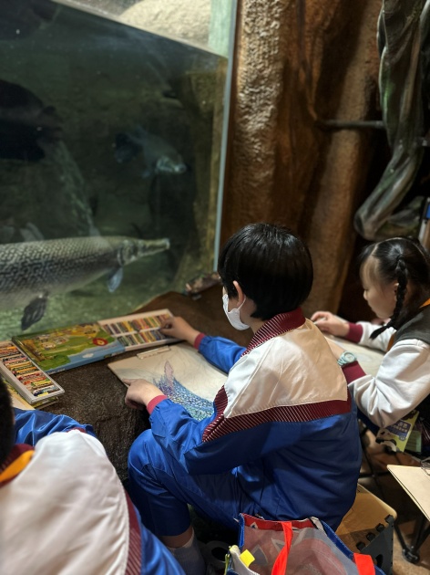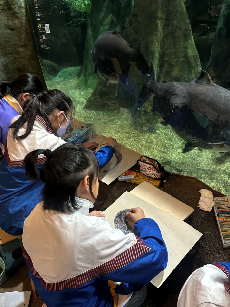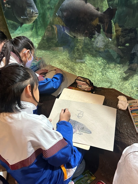 同學們走進熱帶雨林探險徑,近距離觀察海象魚與其他珍稀動物,以畫筆捕捉牠們的神態與動感。透過這次活動,同學們的繪畫技巧更加純熟,眼光也變得更加敏銳——學會用心閱讀大自然的細微變化,並體會到愛護動物及保育的重要性。