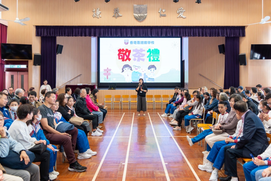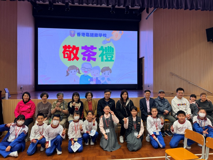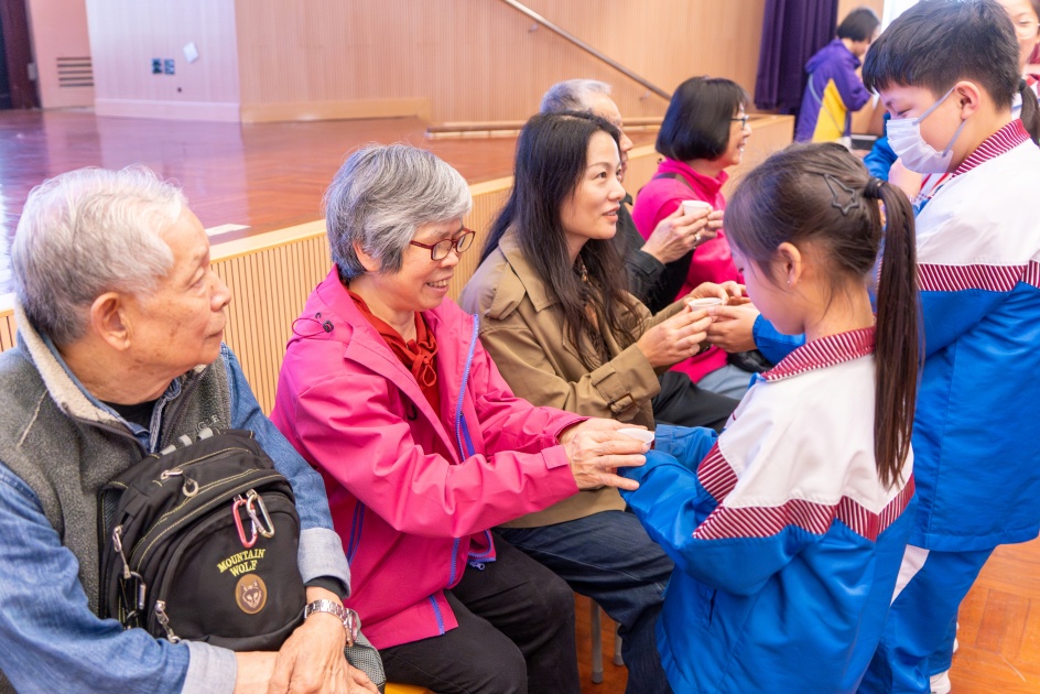 「敬茶禮」在溫馨愉快的氣氛中圓滿結束。活動先透過遊戲、互動任務及「我想跟你說」,讓學生與長輩加深彼此認識及向對方表達欣賞。接着,學生透過敬茶環節向長輩表達感恩和尊重。最後,學生帶領長輩進行校園遊蹤,讓長輩多了解學生的校園生活,並一同拍攝家庭照,為溫馨畫面留下倩影。