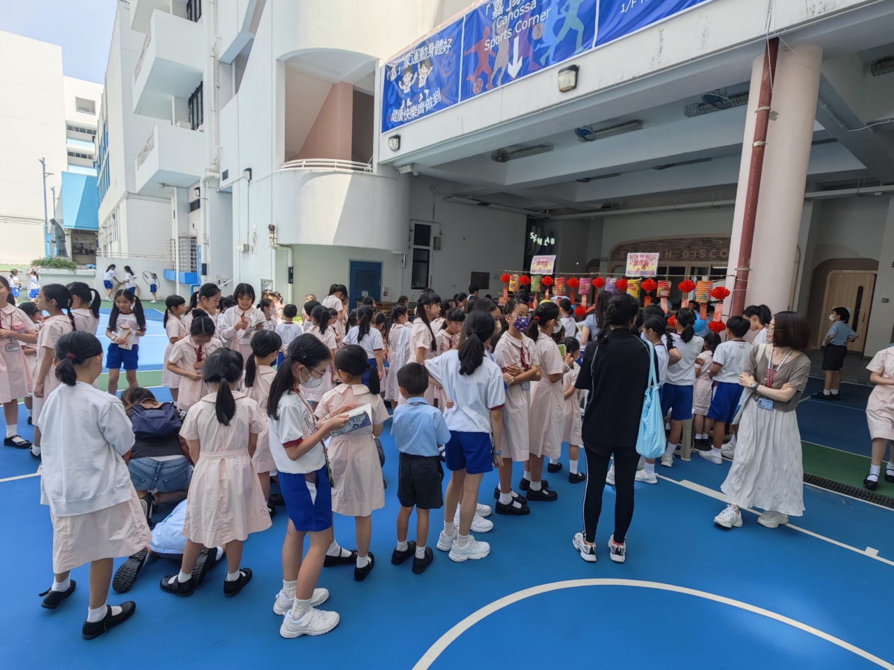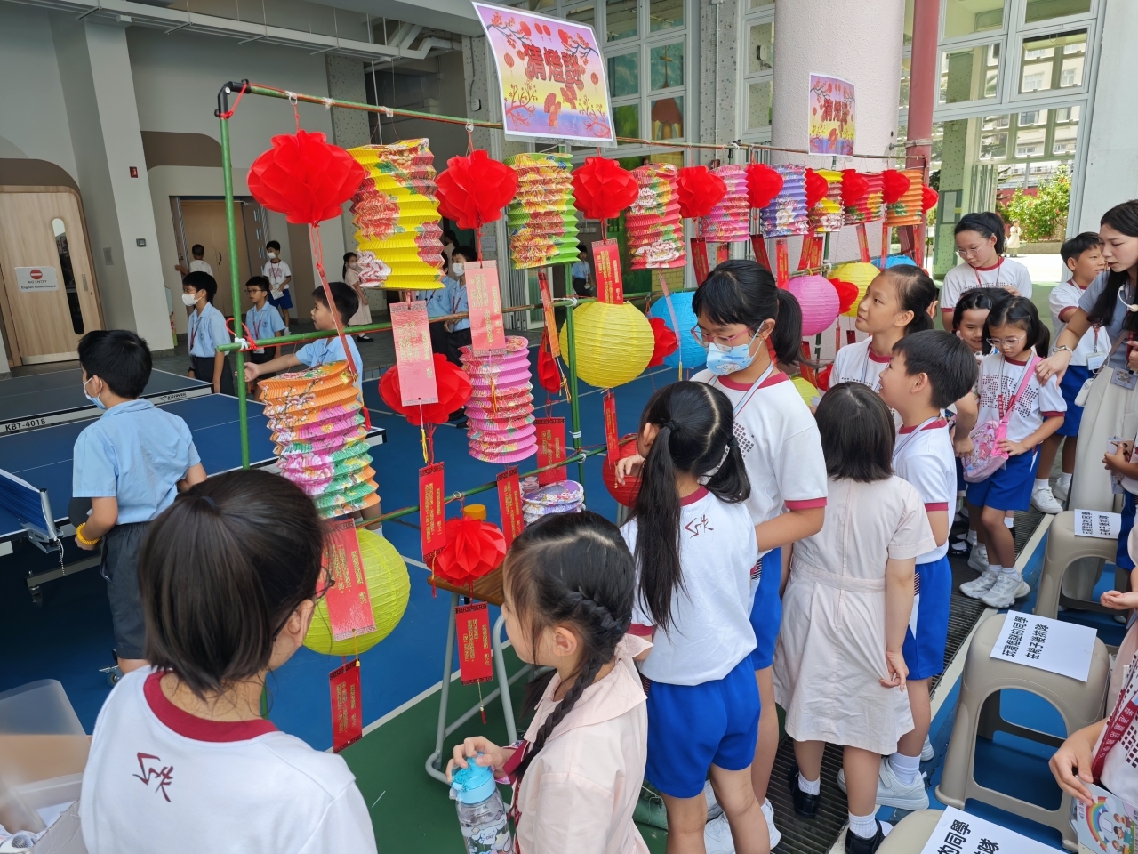當天早上,全體師生齊集操場,參加了升旗儀式。伴隨著雄壯的國歌聲,鮮豔的五星紅旗冉冉升起,師生們肅立行注目禮,場面莊嚴而隆重。其後,憲法及基本法學生校園大使發表了國旗下講話,講話中勉勵全體同學要努力學習、關心社會,立志成為才德兼備的棟樑,將來為國家發展貢獻力量。此外,學校於全天的小息及午息時間,在操場舉辦了充滿趣味的 「國慶猜燈謎」 活動。現場佈置了二十多道燈謎,內容豐富多彩。憲法及基本法學生校園大使在此次活動中擔當了重要角色,他們負責主持及協助整個流程,表現得相當專業和出色。活動期間,同學們反應熱烈,踴躍參與,或低頭沉思,或熱烈討論,不少同學更是不斷嘗試,展現堅毅的精神,現場氣氛非常熾熱。是次國慶活動不僅加深了同學對國家歷史的認識,更成功激發了他們的愛國情懷,以及對國民身分的認同,意義深遠。