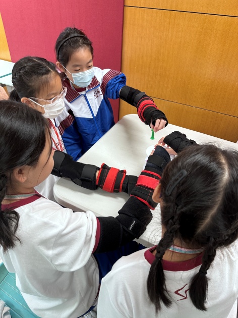 本年度五年級跨學科專題主題是利用mircobit編程,創作不同的發明品,為長者解決生活難題。為了讓學生更貼身了解長者面對的困難,學校邀請了機構到校舉辦體驗式工作坊。透過體驗式的設備(特製眼罩、負重沙袋裝備),學生更能感受到長者日常生活面對的困難,機構的社工和長者都能帶領學生思考長者在不同情況下遇到的問題,例如在等待巴士時,長者可能因為眼睛模糊而看不清車牌。另外,學生能透過與長者訪談,了解到長者可能在日常生活會遇到的困難,從而協助學生進行專題的構思。