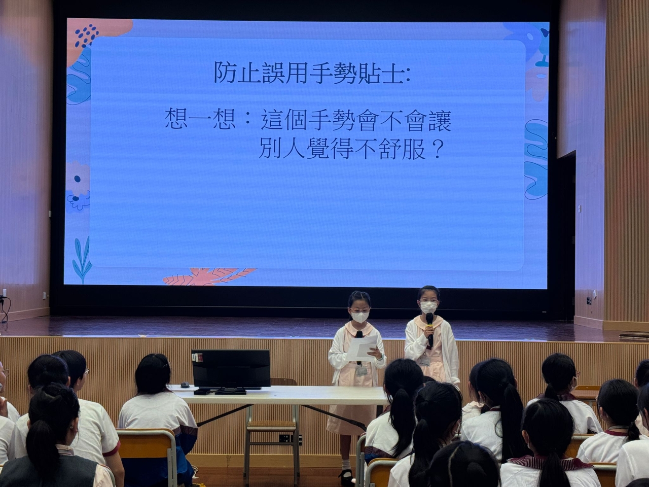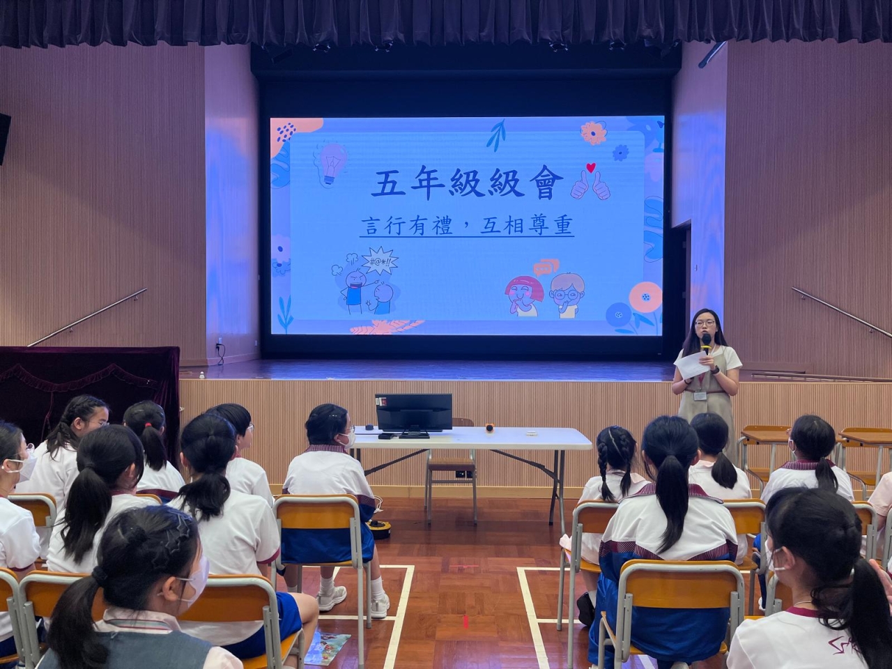 五年級於3月30日進行了第二次級會,是次級會主題為「道德、價值觀念」。同學以出色的演技呈現了兩套短劇,短劇內容探討了同學説粗俗語言和亂用手勢的原因,並提供了有效的解決方法,藉此提醒同學們要謹言慎行,建立正確的道德觀及價值觀,共同營造和諧的校園生活。