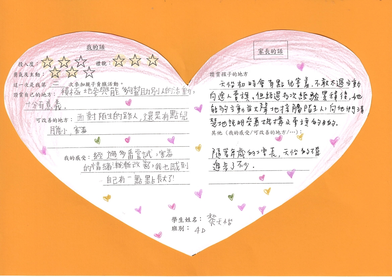 在活動過程中,學生表現積極主動,態度友善且有禮。他們主動走向路人,以清晰而溫和的聲音邀請途人購買旗幟。即使面對匆忙的行人或婉拒的市民,學生們依然保持微笑,並不忘說聲「多謝」或「唔該」,展現出良好的禮貌與耐性