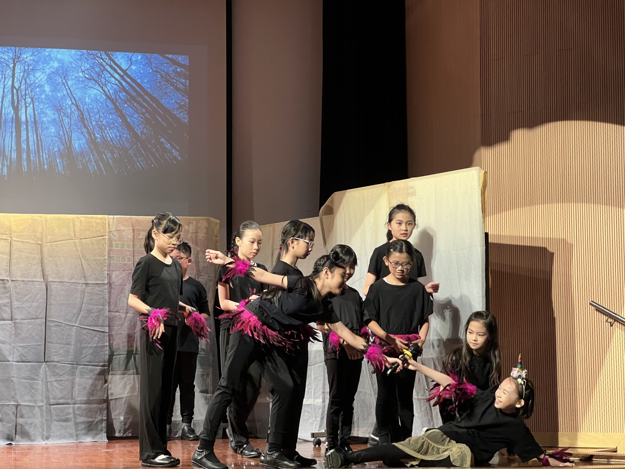 Learning drama can enhance students’ communication skills, creativity and confidence. This year, twenty-one P.5 students began their English drama course in November and had their final performance ‘A Midsummer Night’s Dream’ on 23rd June, 2023. To understand more about drama and William Shakespeare, all P.5 students watched some pre-show videos and also a school touring performance ‘1930’s Radio Play’ held by Shakespeare4All in October. Students also learned and interacted through the pop-up corner.