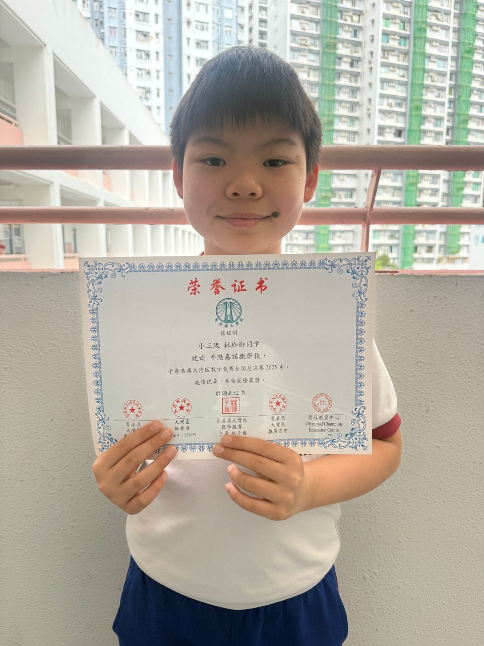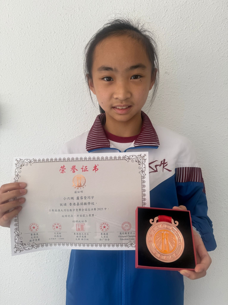 本校以下同學於「大灣盃粵港澳大灣區數學競賽全國總決賽2025」中,勇奪以下成績,在此感謝同學努力積極參與,並恭喜得獎同學。