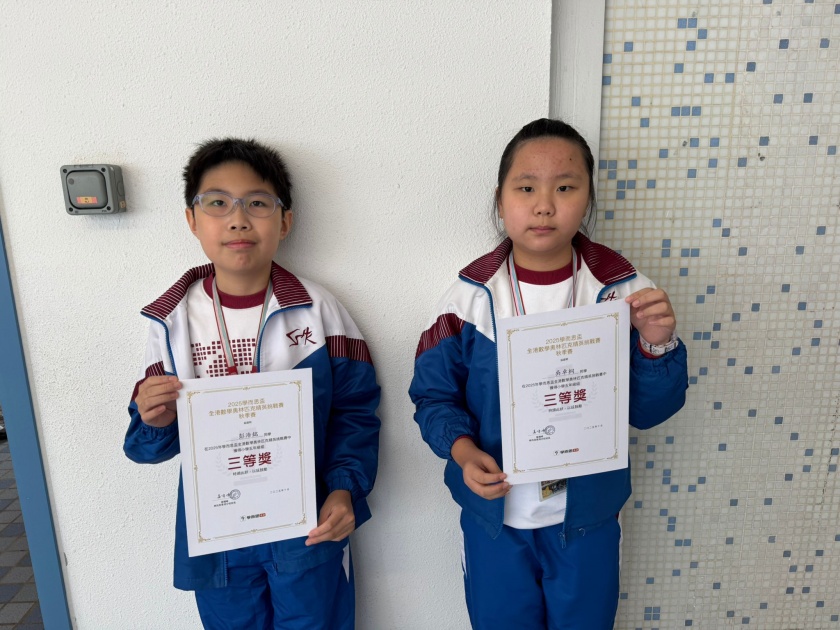 本校以下同學於「學而思盃-全港數學奧林匹克精英挑戰賽」中,勇奪以下成績,在此感謝同學努力積極的參與,並恭喜得獎同學。