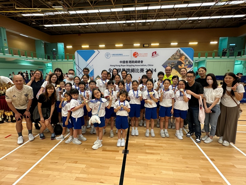 本校花式跳繩隊及初班於6月23日(星期日)參加全港學界跳繩比賽 2024。當天各隊員竭盡所能,最終獲得港島區小學組女子甲組總成績亞軍、女子乙組總成績亞軍。比賽期間隊員均努力奮鬥,大家互相支持和鼓勵。校方特別感謝當天出席為同學打氣和協助的家長。