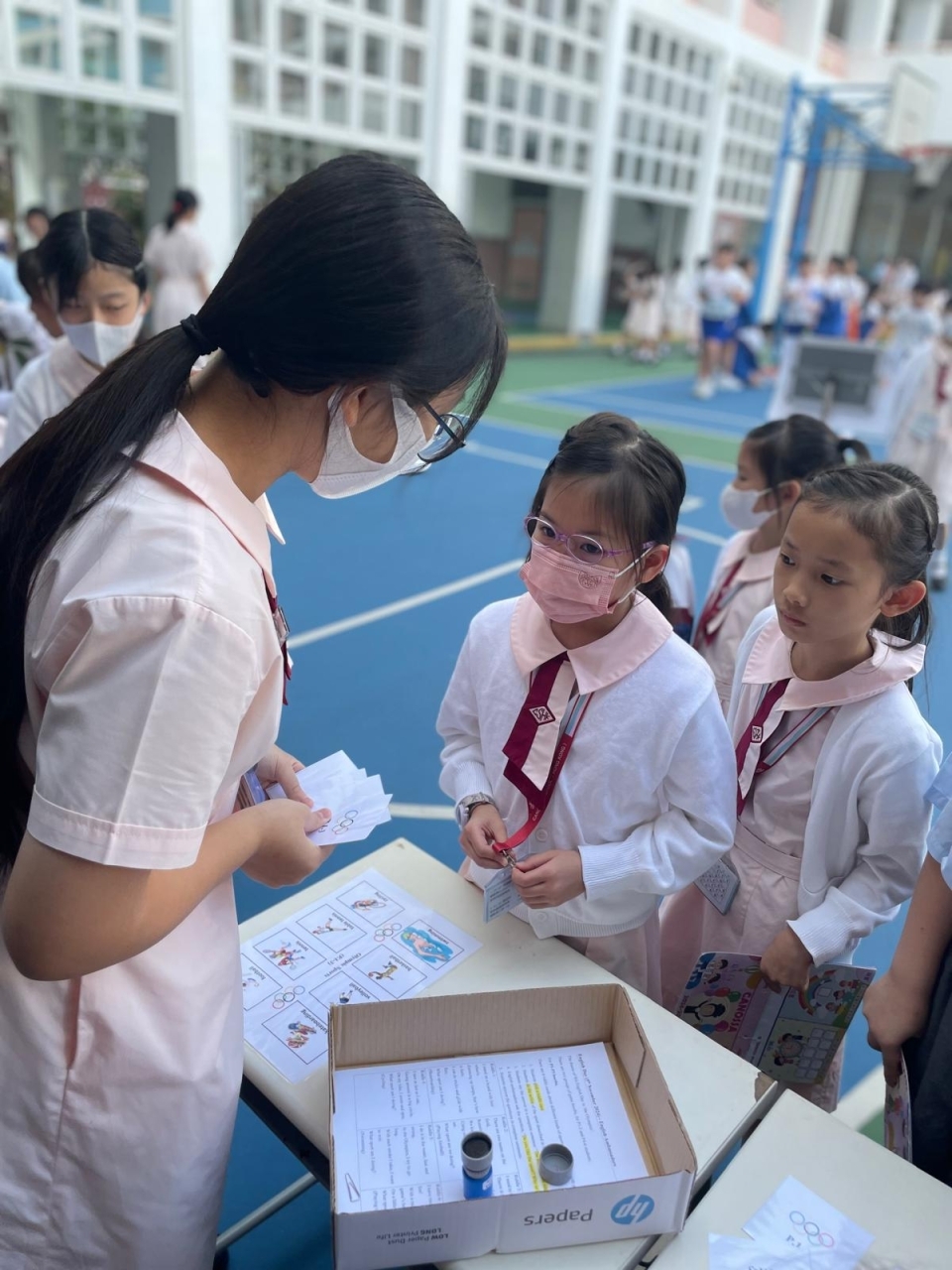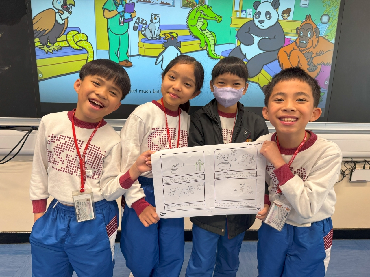 We strive to create a language-rich environment through various activities. English Days, organised biweekly, encourage students to use English through themed games and activities. Additionally, English ambassadors from P4-6 lead prayers in assemblies, enhancing the English-speaking environment. During recess and lunchtime, Native English Teachers (NETs) engage with students in the English Room, promoting conversation and interaction in English.