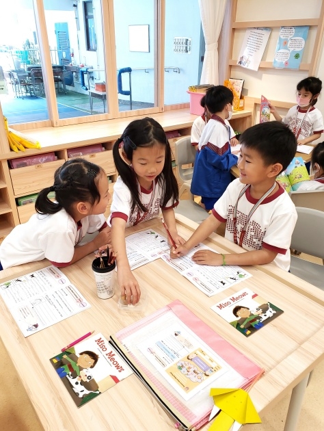 P1-6 students participate in shared reading lessons with Native English Teachers (NETs), enjoying a variety of storybooks. To further foster literary appreciation, we introduce works by renowned authors such as Roald Dahl, Enid Blyton, and Jacqueline Wilson. These books are selected for their engaging language and alignment with our school’s values of education.