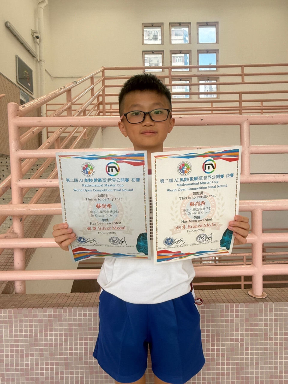 恭喜本校學生5D班蔡尚希於「第二屆AI奧數(數霸盃)世界公開賽